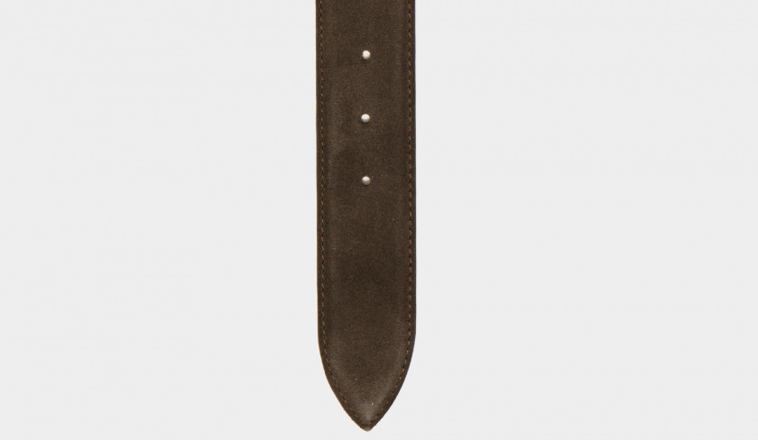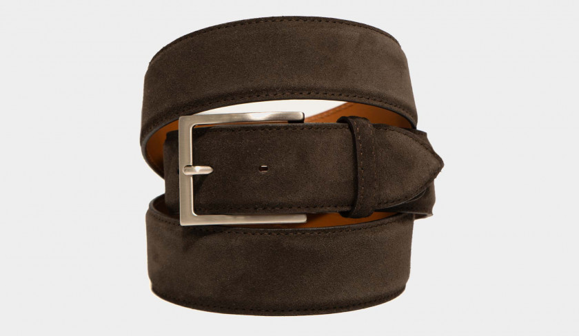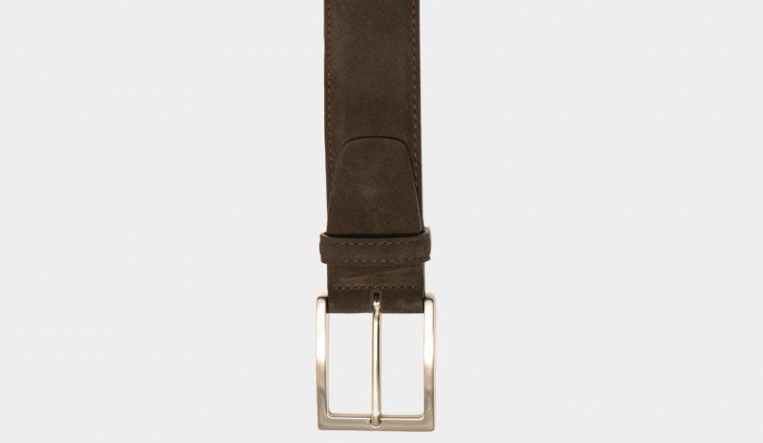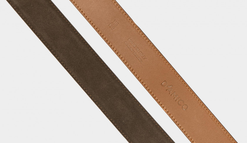 Sophisticated suede leather belt, with matching color stitching and a sleek metal buckle. Versatile enough to complement both smart casual and formal attire, it adds a touch of Italian elegance to any ensemble. Crafted in Italy, it comes in a choice of taupe or navy as well.