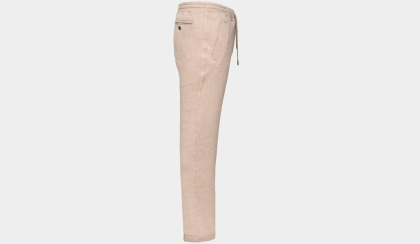 Luxury jogger pants made with a brushed Cashco fleece. Two slanted side pockets and one back pocket with logo button. Elastic waistband with drawstring closing with two logo metal stopper. Warm and ultra soft Capobianco pants for leisure time. 100% Made in Italy. Also available is the complementing Capobianco hoodie to make it a leisure suit.