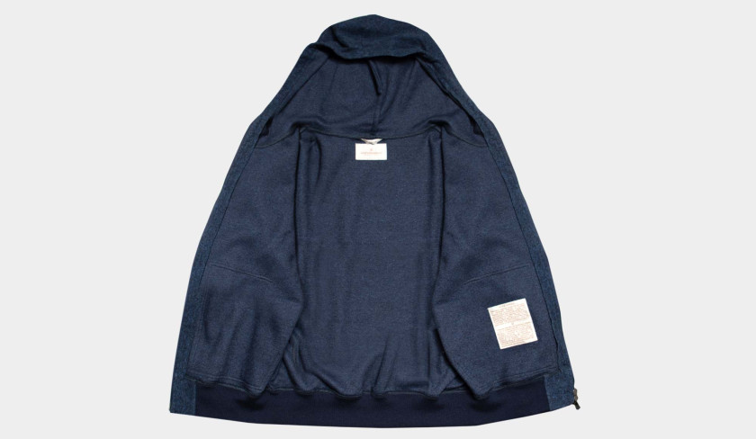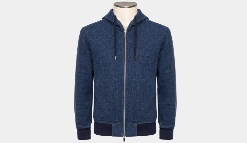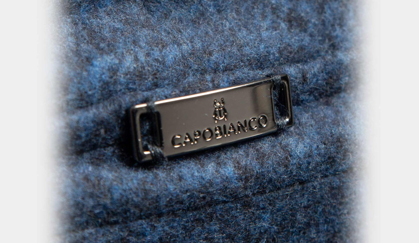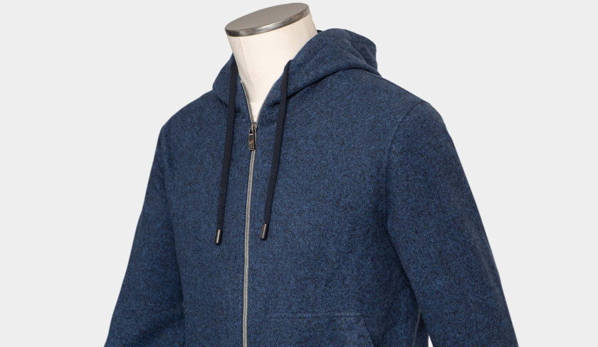 This luxurious hooded cardigan from Capobianco is crafted from brushed blue wool-cotton blend, offering both warmth and style in a sophisticated tone-on-tone palette. Featuring two convenient side pockets, it's perfect for storing essentials or keeping your hands warm. Knitted cuffs and an elastic waistband ensure a tailored fit. The fine double zipper closure, premium hoodie cords and the metal plate with logo highlight the garment’s attention to detail and timeless luxury. Pair it with the Capobianco jogger in the same fabric for a stunning luxurious sport suit.