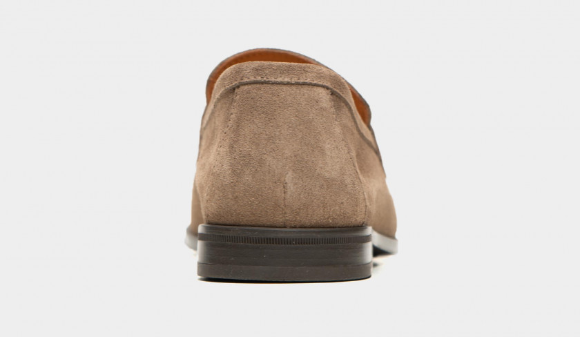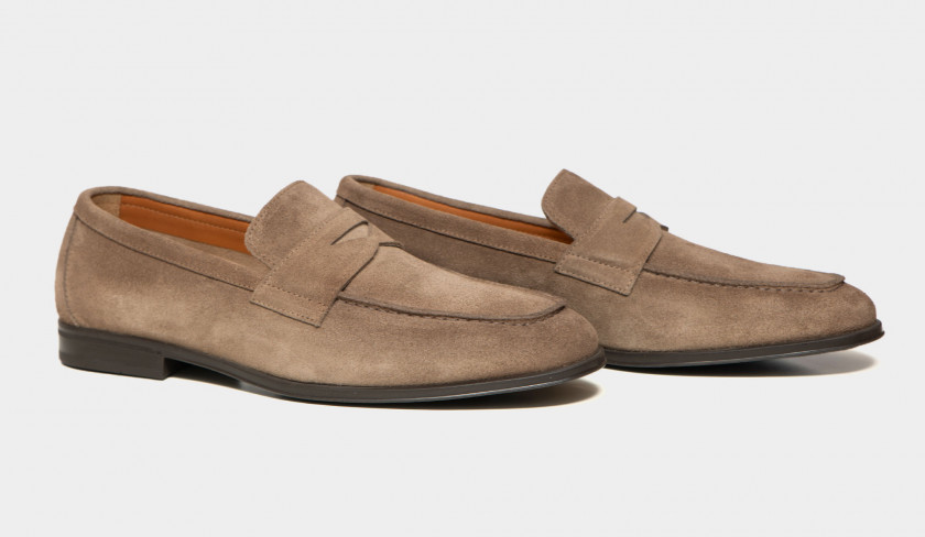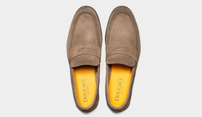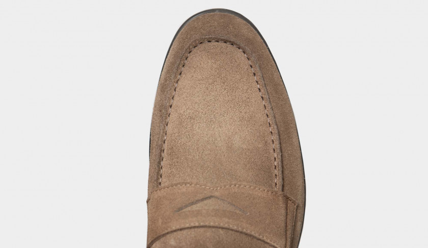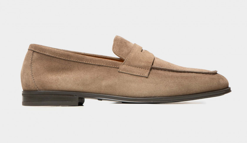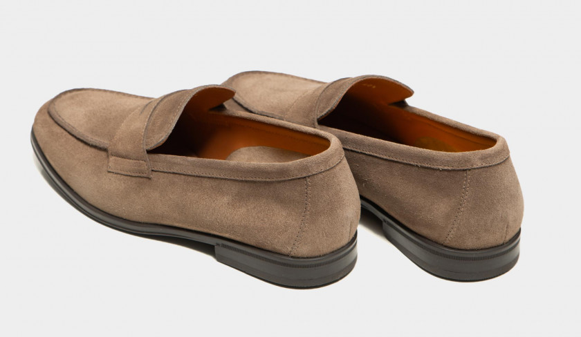 Waxed, light brown, calf skin suede penny loafer with a casual yet elegant appeal. Enhanced by a smooth calfskin (half) lining and set on an ultra-flexible rubber sole for exceptional comfort. Expertly crafted with cemented Blake construction and an eco-friendly, high-adhesion rubber sole to ensure lasting durability. Made in Italy.
