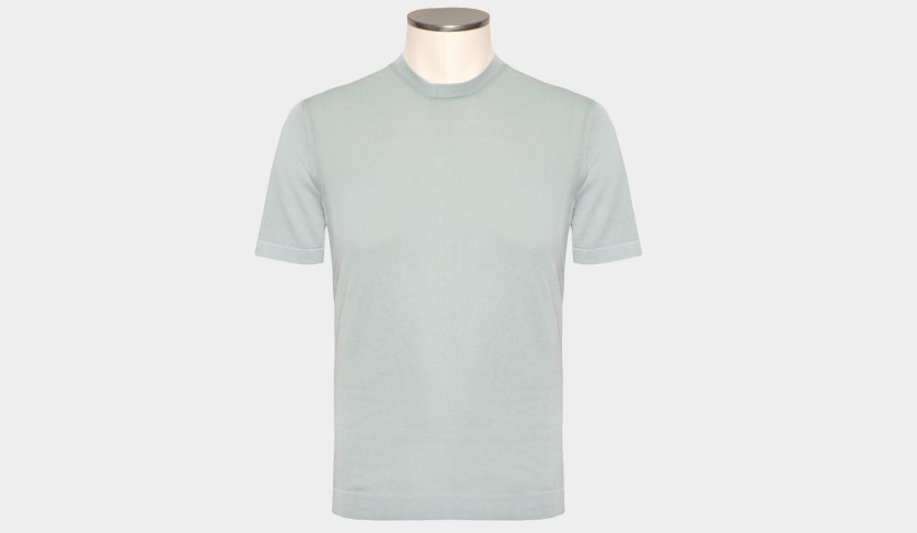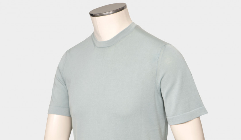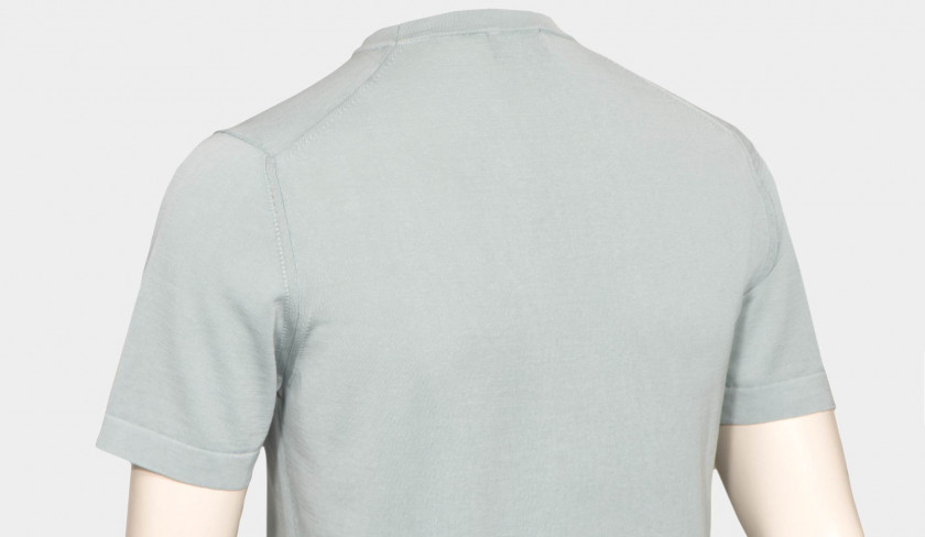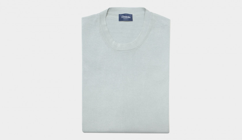 Drumohr knitwear mention ‘gauge’ in their descriptions. The smaller the gauge number, the heavier the knit. The higher the gauge number, the lighter and finer the knit. Gauge is the number of stitches per inch on a piece of knitwear. In general, the heavier the yarn, the fatter the needle you should use, the bigger the stitches it will make, and so you will need fewer of them. The thinner the yarn, the thinner the needle you should use with it, the smaller the stitches and you need more of them, so higher the gauge number. This Drumohr '30 gauge' garment-dyed crewneck with short sleeve, has a distinctive look and a fresh and summerish fragola color. Also available in aqua, corn and light-blue.