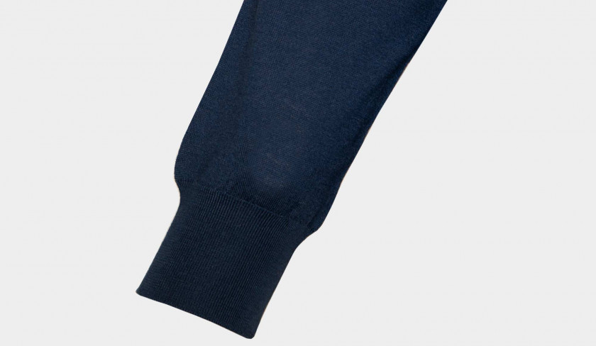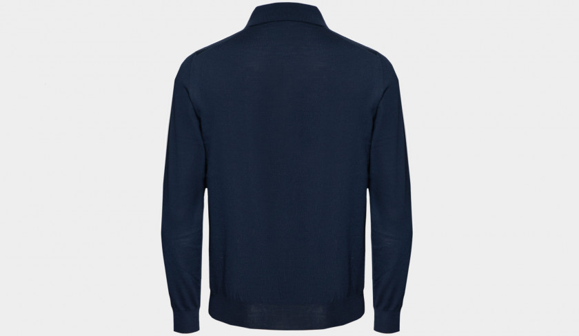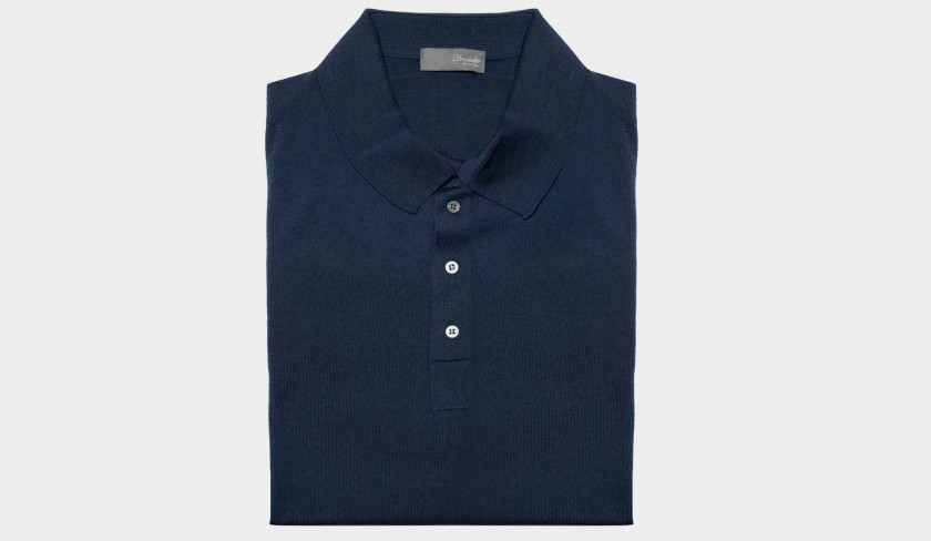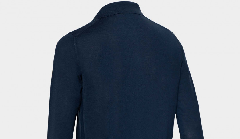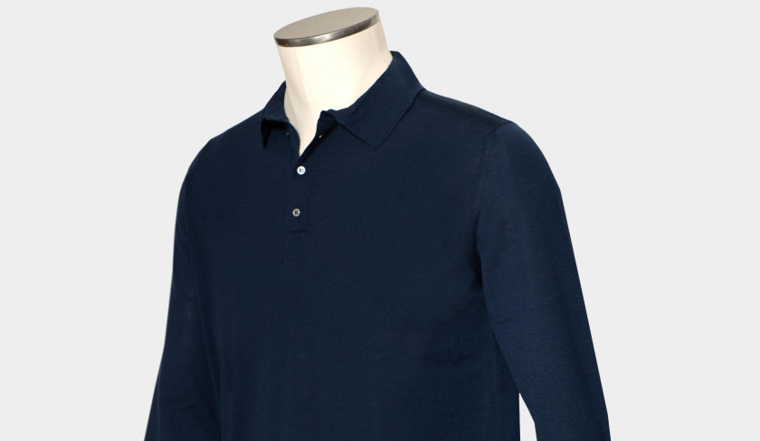 Light weight, superfine 140S woolen polo in blue from Drumohr. Made in Italy luxury basic for colder days. An S number on the label of wool suits or other tailored apparel, wool fabric, or yarn, indicates the fineness of the wool fiber used in the making of the apparel, as measured by its maximum diameter in micrometres. Fiber fineness is one of the factors determining the quality and performance of a woolen product.