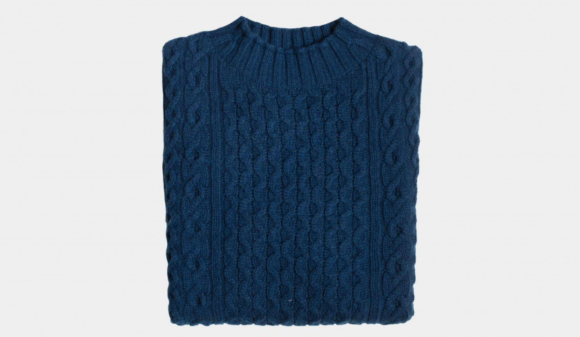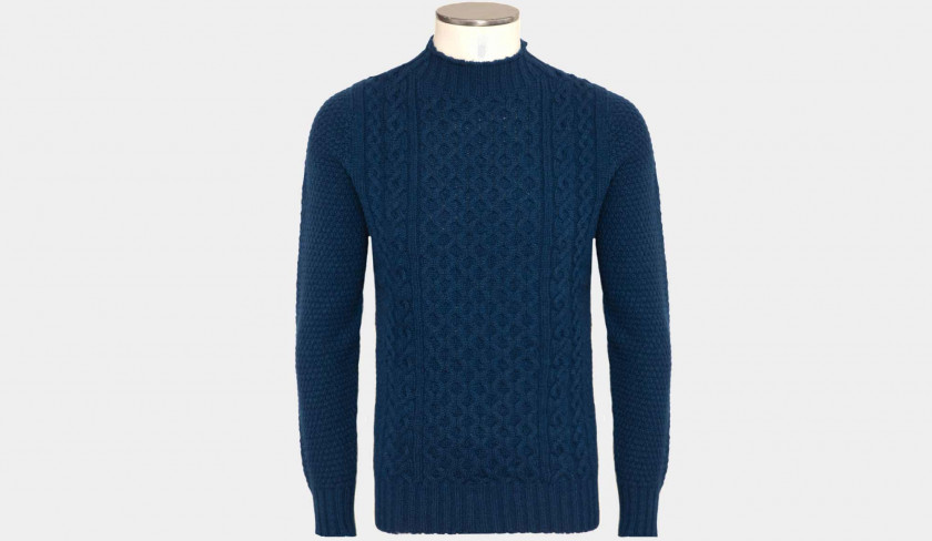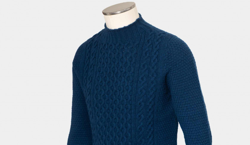 The Aran sweater has its origin in Ireland, where it has been suitable clothing for the community of fishermen and farmers, before becoming fashionable. The natural wool fibre used in the sweaters is breathable, drawing water vapour away from the skin and releasing it into the air, thus helping the body to maintain an ideal temperature. It is water repellent, not allowing the rain to penetrate the sweater and therefore keeping the wearer dry. An Aran sweater can absorb 30% of its weight in water before feeling wet. Different kind of stitches, like the Cable Stitch, are a depiction of the fisherman's nets and ropes, and represents a wish for a fruitful day at sea.