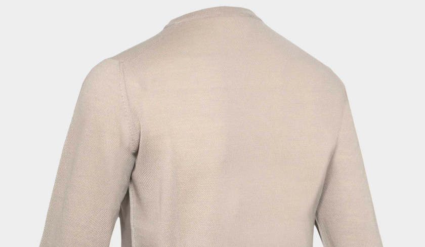 A true wardrobe staple, crafted from pure, untreated merino wool, a seasonal favorite celebrated for its natural feel and long-lasting quality. A sustainable choice that combines comfort with durability. The ribbed collar, cuffs, and hem lend a refined finish, perfect for transitional days when the weather is in between. Style it effortlessly over jeans or cotton chinos, layered with a shirt or worn solo over a no-show tee.