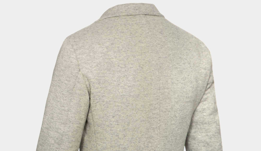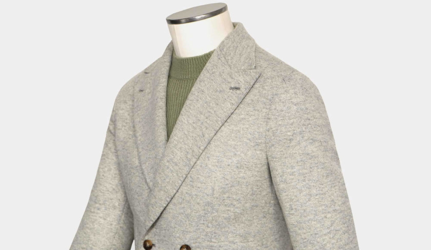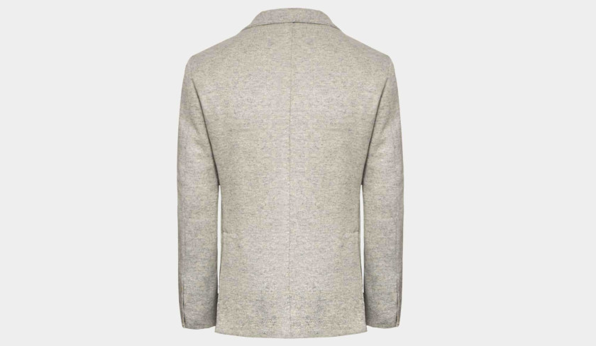 Double-breasted, knitted Gabo Napoli jacket, tailored from a refined wool blend, a model mix between an outerwear jacket and a cardigan Featuring peaked lapels and a fashionable double-breasted silhouette, the jacket showcases beautifully hand-finished buttonholes on the front and lapel, reflecting true Neapolitan craftsmanship. Heavier than a standard sports jacket or blazer, it makes the perfect transitional piece, easily worn over a rollneck or shirt. For an elegant look, pair it with heavier woolen or cotton chinos.
