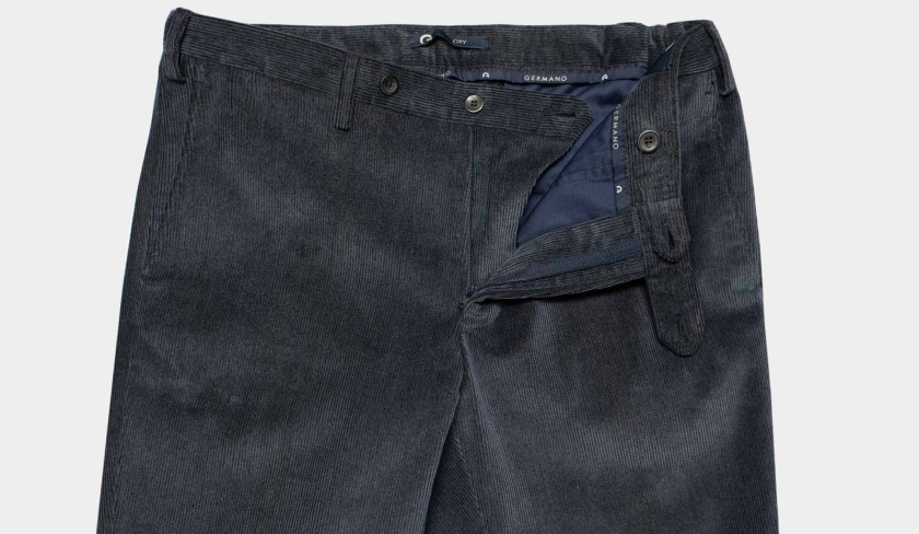 Germano’s corduroy trousers embody timeless elegance, crafted with a straight cut and sophisticated fabric detailing. Designed with a zipper and button closure, belt loops, two side welt pockets, and two back pockets, they balance classic style with functionality. Part of the City line, this model features a slim tapered fit that offers a modern silhouette while maintaining refined appeal.