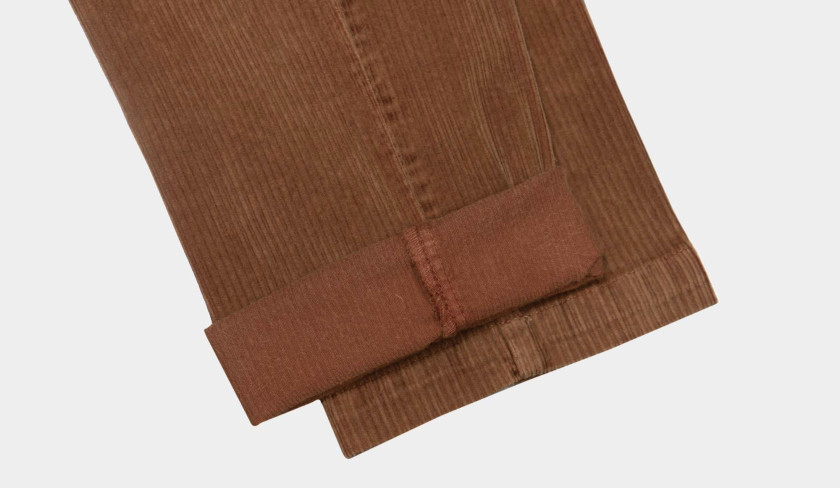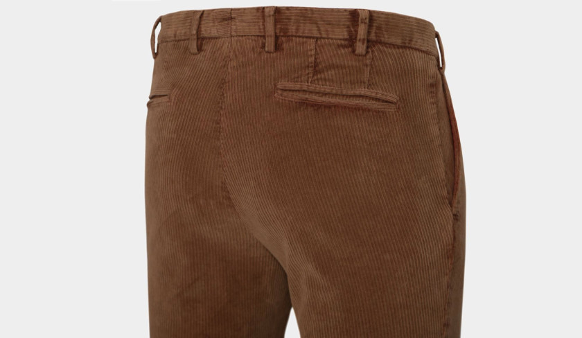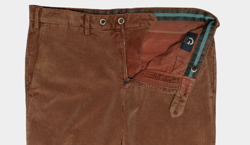 Among our preferred garments during the winter season, ribcords hold a special place alongside flannel. Their stretch composition makes them an excellent choice, provding comfort and flexbility. In addition, the inclusion of 2% elastane ensures that they maintain their shape, We've chosen Germano's "Slim-fit" model to achieve a modern style. For a laid-back appearance, pair it with a roll-neck knit and comfortable slip-ons.