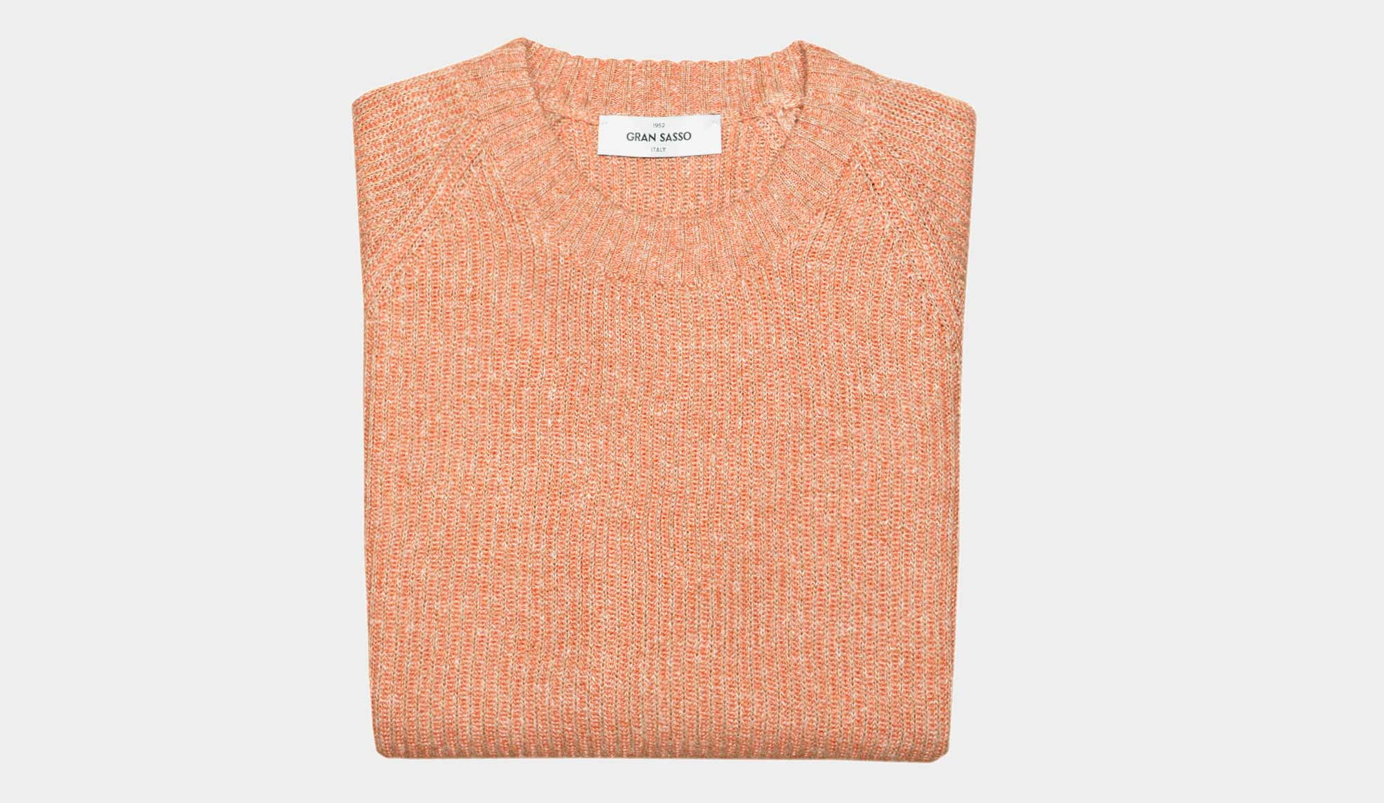 Introducing a summer-ready crewneck crafted from a luxurious blend of linen and cotton, perfect for warmer days. Its vibrant blend of coral tones ensures it catches the eye effortlessly. Featuring a distinctive raglan shoulder design and cuffs and hem in matching color, this piece from Gran Sasso exudes individuality. Pair it with sneakers or loafers alongside white trousers for a stylish ensemble.