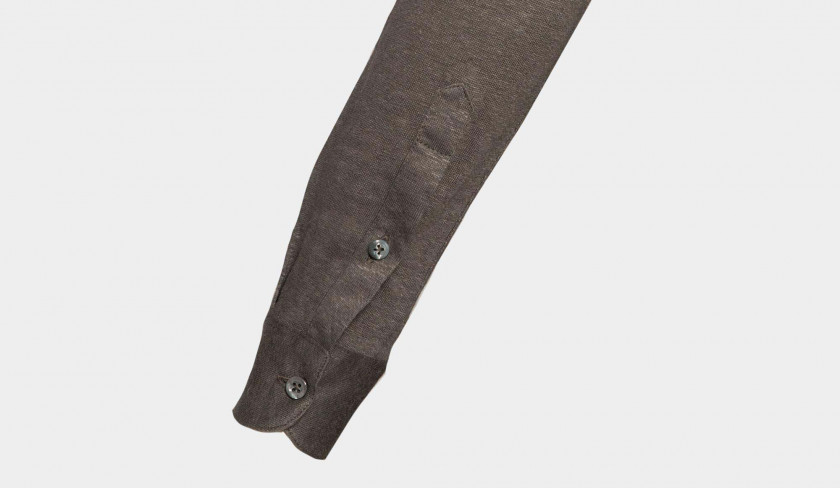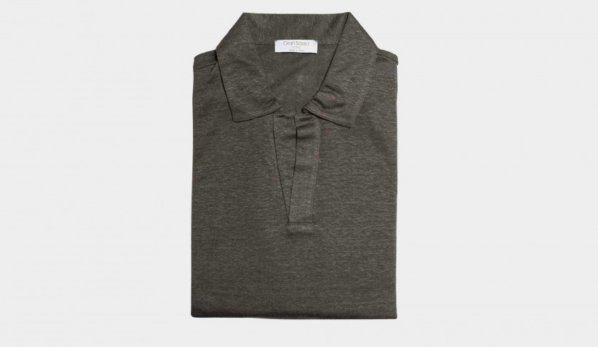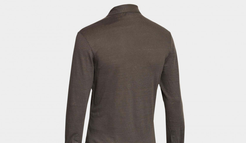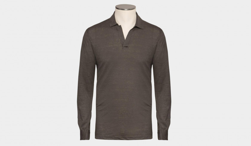Soft and elegant longsleeve Gran Sasso V-neck polo made from 100% linen. The sleeves are finished with shirt cuffs and the bottom hem is straight with side splits so you can wear it, summer style, over your trousers.