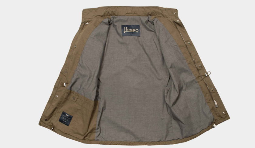 Discover the rugged elegance of the Herno Field Jacket. Crafted in a military green shade, this casual essential features a water-repellent outer shell with a special dyeing process that enhances its rich texture, making it easy to elevate any look. Designed with practicality in mind, it includes multiple spacious pockets, a concealed zip with snap-button closure, and a stand-up collar with an additional zipper. An internal drawstring at the waist allows you to adjust the fit to your preference.