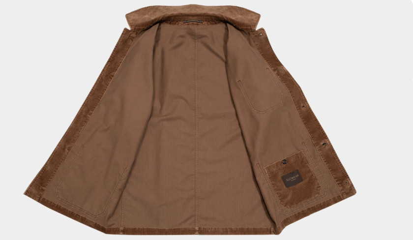 Incotex shirt jacket crafted from soft-touch, ribcord or corduroy fabric, designed for versatility across the seasons. Its unique construction makes it an ideal outerwear piece for transitional weather, while in late winter it serves as a casual layering jacket. Detailed with a button closure, two side pockets, and a chest pocket, it pairs effortlessly with light-colored flannel trousers or jeans, worn over a fine crewneck or T-shirt.