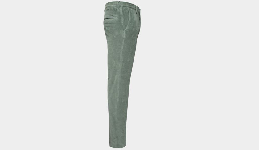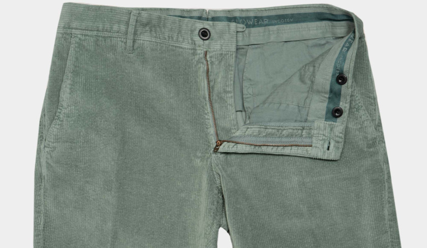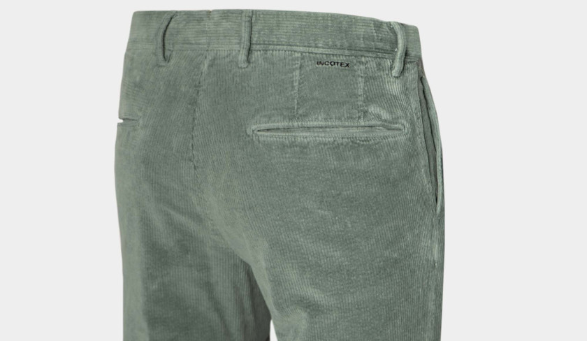 The must-have fabric this season is ribcord, or corduroy, and Incotex brings it back in style with a refined green-grey shade. From the versatile Slacks line, these trousers transition effortlessly between formal and informal occasions. Featuring a zip fly, two chino side pockets, two back pockets, and the signature after-dinner split, they embody Incotex’s blend of comfort and sophistication.