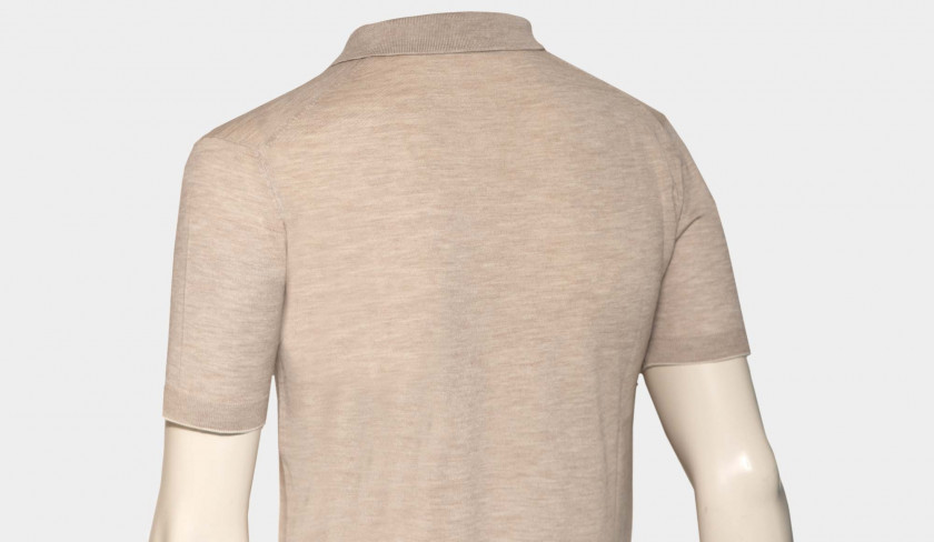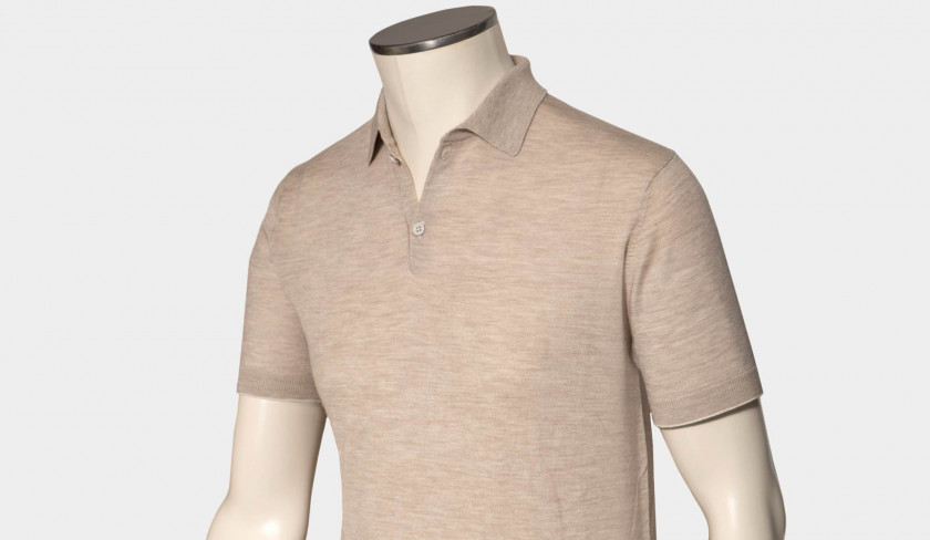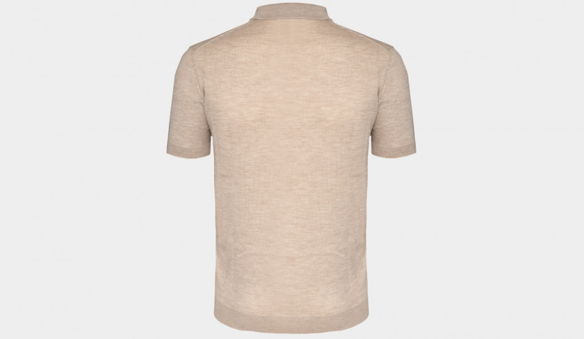Super-soft and chique Lubiam knitted, short sleeve polo in luxury wool-silk-cashmere blend. Knitted collar, elegant ribbed arm hems with contrasting edge on the sleeves and two button closure. Available in beige and green. Fits one size smaller then indicated, so order one size bigger then you would normally wear.