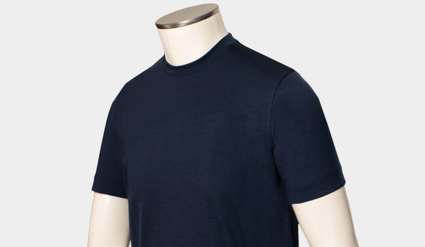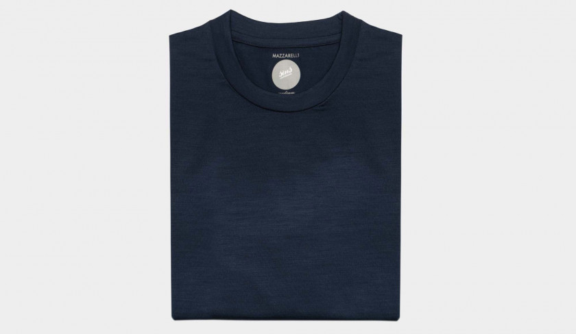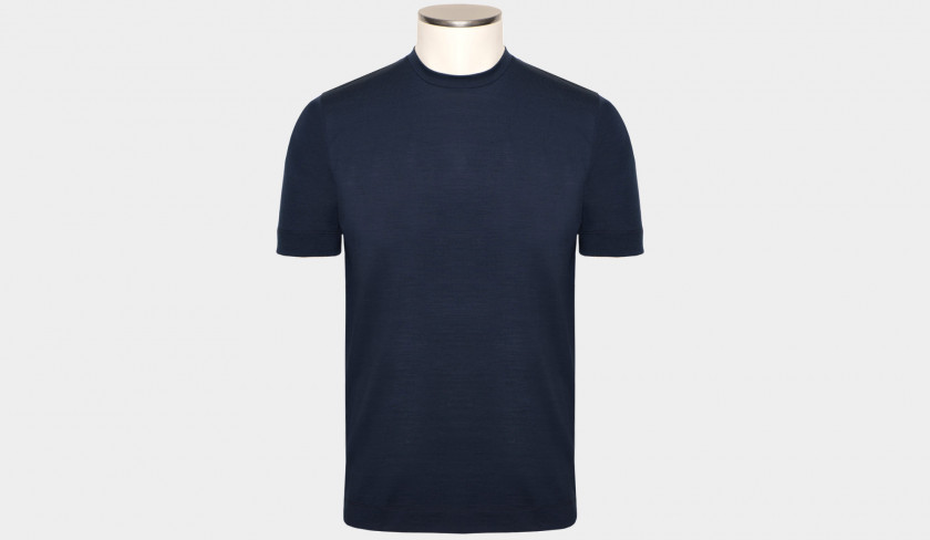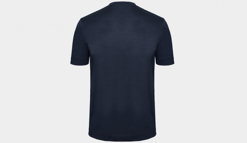 Luxury, short-sleeve navy t-shirt in 100% virgin wool, in slightly more relaxed fit and hemmed with 2 side vents, made by Mazzarelli from Puglia. As wool is more color fast unlike cotton, which usually tends to fade after washing, its also 100% natural, all-season, soft and luxury. Wear this beautiful basic under your jacket, cardigan or shirt-jacket, or in summer as single piece on top of denims or slacks.