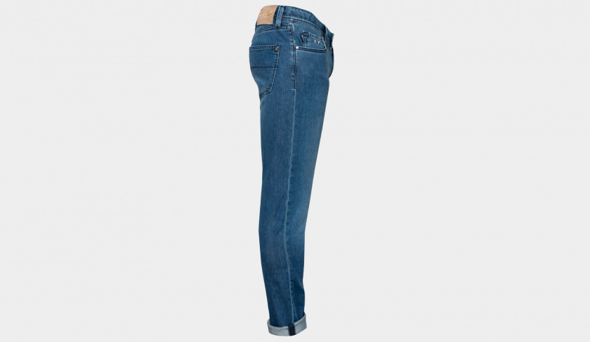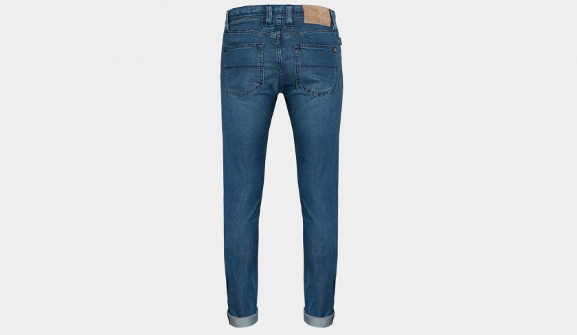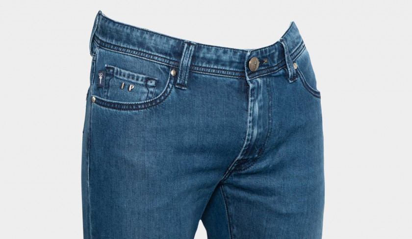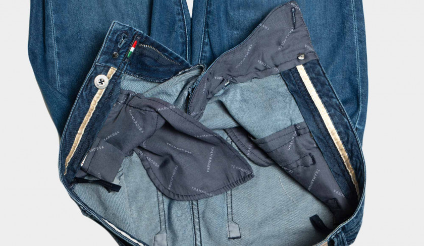 Great Tramarossa denim in model Leonardo Zip, made in lighter weight, comfortable 'soft touch' cotton-stretch fabric, with beige suede label with Tramarossa in luxury champagne color metal writing.