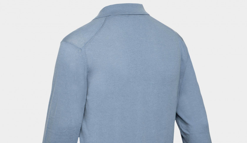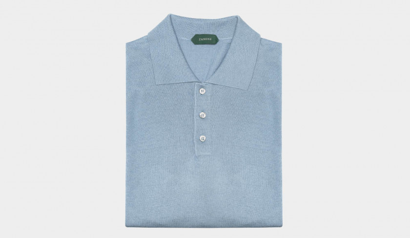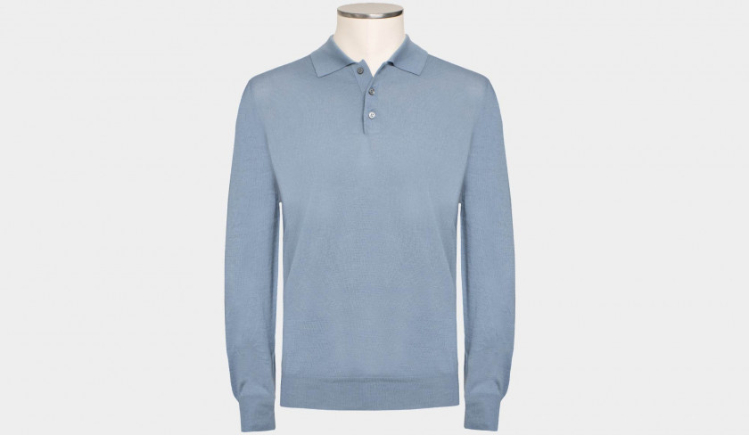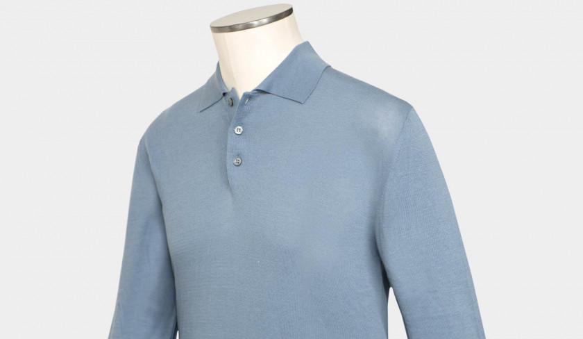 This elegant polo with long sleeve by Zanone, is crafted from a blend of cotton and silk. This blend harmoniously intertwines comfort and sophistication. Colored in a shade of lighter blue, the polo stands as a chic masterpiece, showcasing the exquisite fabric. Featuring a collar secured with buttons, along with ribbed cuffs and hem, adding to its overall allure. Its versatility allows it to be worn under a sport jacket, or matched with a pair of jeans for a more casual and laid-back appearance.