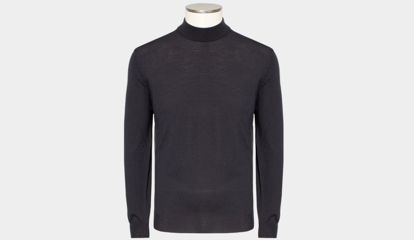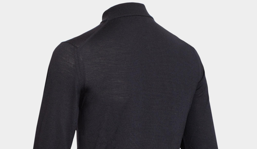 Elegant turtleneck by Zanone, crafted from the brand’s iconic Flexwool fabric. What may seem like a simple garment at first glance is elevated by Zanone into a timeless essential that belongs in every man’s wardrobe. Flexwool is both innovative and practical, offering softness, comfort, and a refined appearance that suits almost any occasion. This carry-over turtleneck, presented in a subtle black tone, is designed for year-round wear and pairs effortlessly with a sports jacket, denim, or flannel trousers.